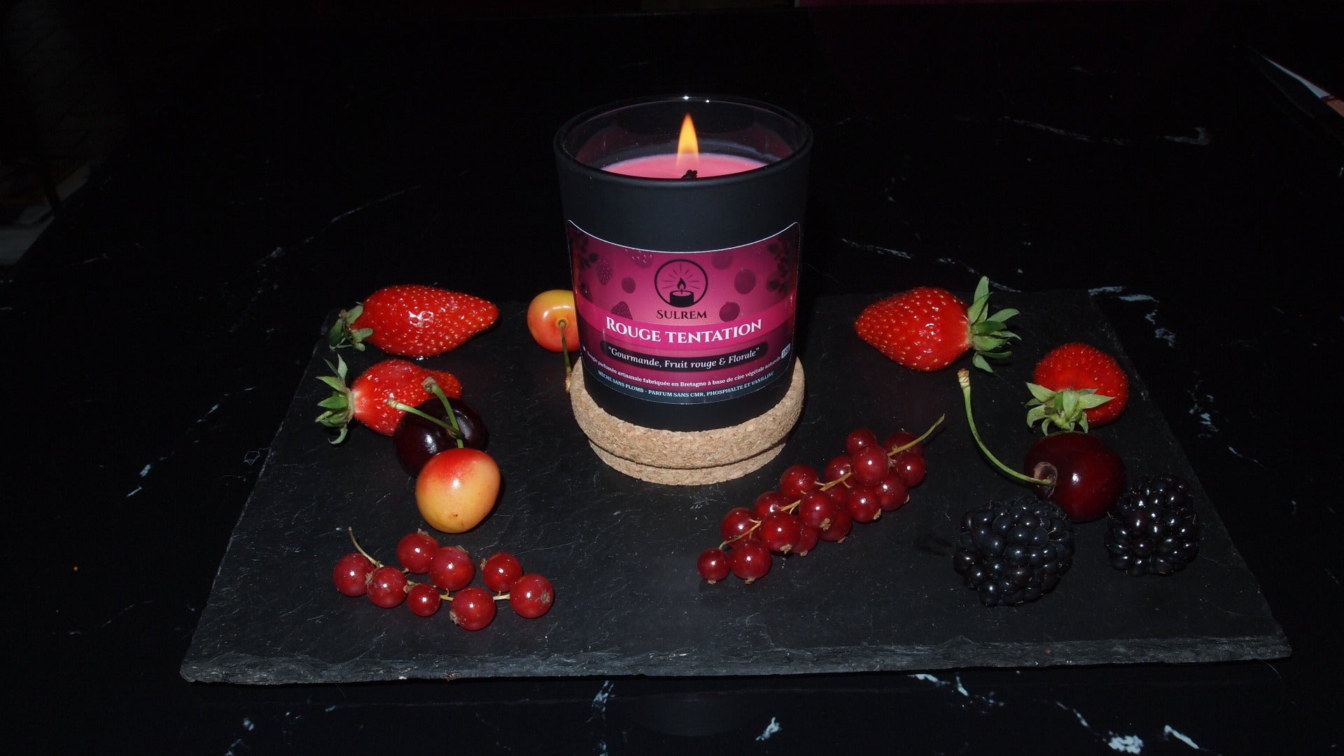 Découvrez Rouge tentation notre bougie parfumée artisanale, résultat d’un savoir-faire français d’exception. Confectionnée avec soin en Bretagne et sublimée par des parfums élaborés à Grasse, ville des parfums. Ses notes de fruits rouges, florales et gourmandes, vous rappellent la sensation de délices sucrés et la fraîcheur des fruits d'été.